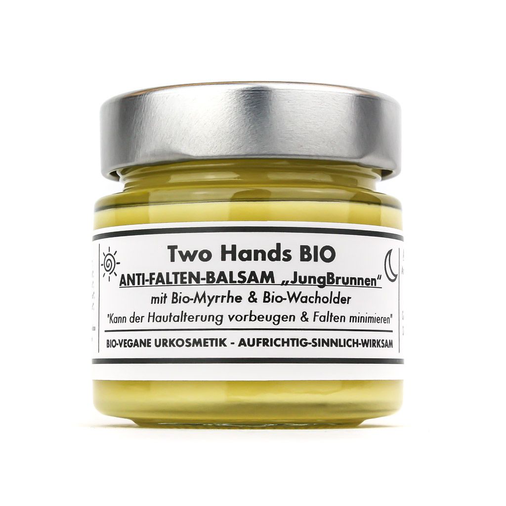 Getestetes Produkt: TWO HANDS BIO Anti-Falten-Balsam „JungBrunnen“ mit Bio-Myrrhe & Bio-Wacholder - Bio-Vegan